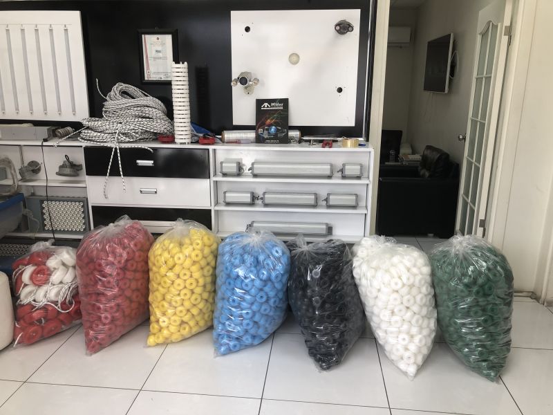havuz kulvar separator topu roma model 6,5cm x 4,2 cm 8mm polyester halat dahil 600 top 27 mt halat set