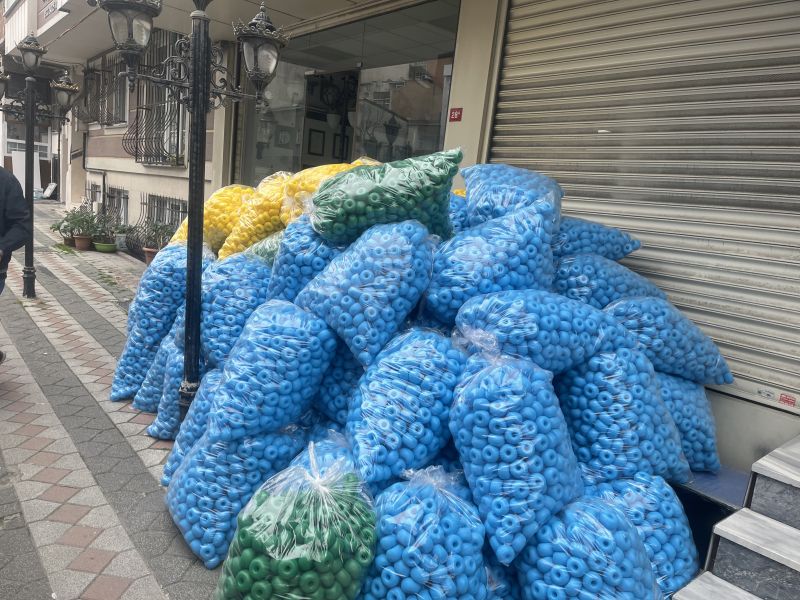 havuz kulvar separator topu roma model 6,5cm x 4,2 cm 8mm polyester halat dahil 1200 top 52 mt halat set